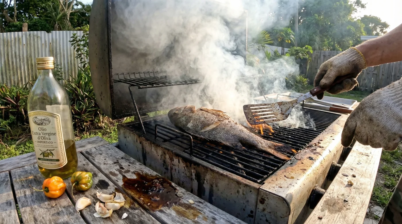 Why does this happen? It all comes down to the science of the grill. Authentic Caribbean marinades rely on a delicate balance of vibrant aromatics like fresh thyme, fiery Scotch bonnet peppers, garlic, and allspice. Extra virgin olive oil has a remarkably low smoke point. The moment your marinated snapper hits a screaming hot grill, that oil begins to break down.